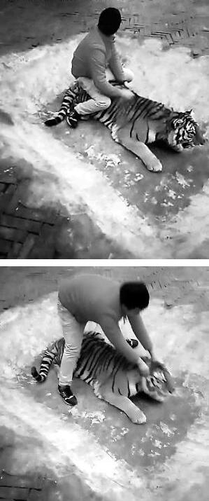 “與老虎待在一起很久,并不擔心老虎會攻擊或傷害,”他的語氣中透露著自信,在聊天中,他似乎并未意識到自己的行為存在虐待動物的嫌疑,他表示動物園也沒有反對這種行為,還表示類似的視頻每天都會拍。