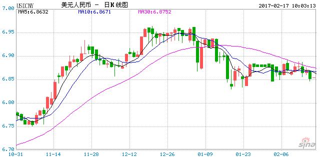 2月17日,外匯交易中心數據顯示,人民幣(6.8606, 0.0090, 0.13%)兌美元中間價報6.8456,上日中間價6.8629,升值173個基點。人民幣兌美元中間價連續四天上調,為2016年8月來最長連漲。上日官方收盤報6.8585,夜盤收盤報6.8540。