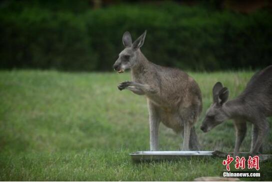 資料圖:正在享用飼料的袋鼠。孟德龍 攝
