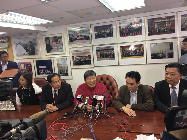 湯恩佳(中)表示,孔教界選委10票全數提名林鄭月娥。