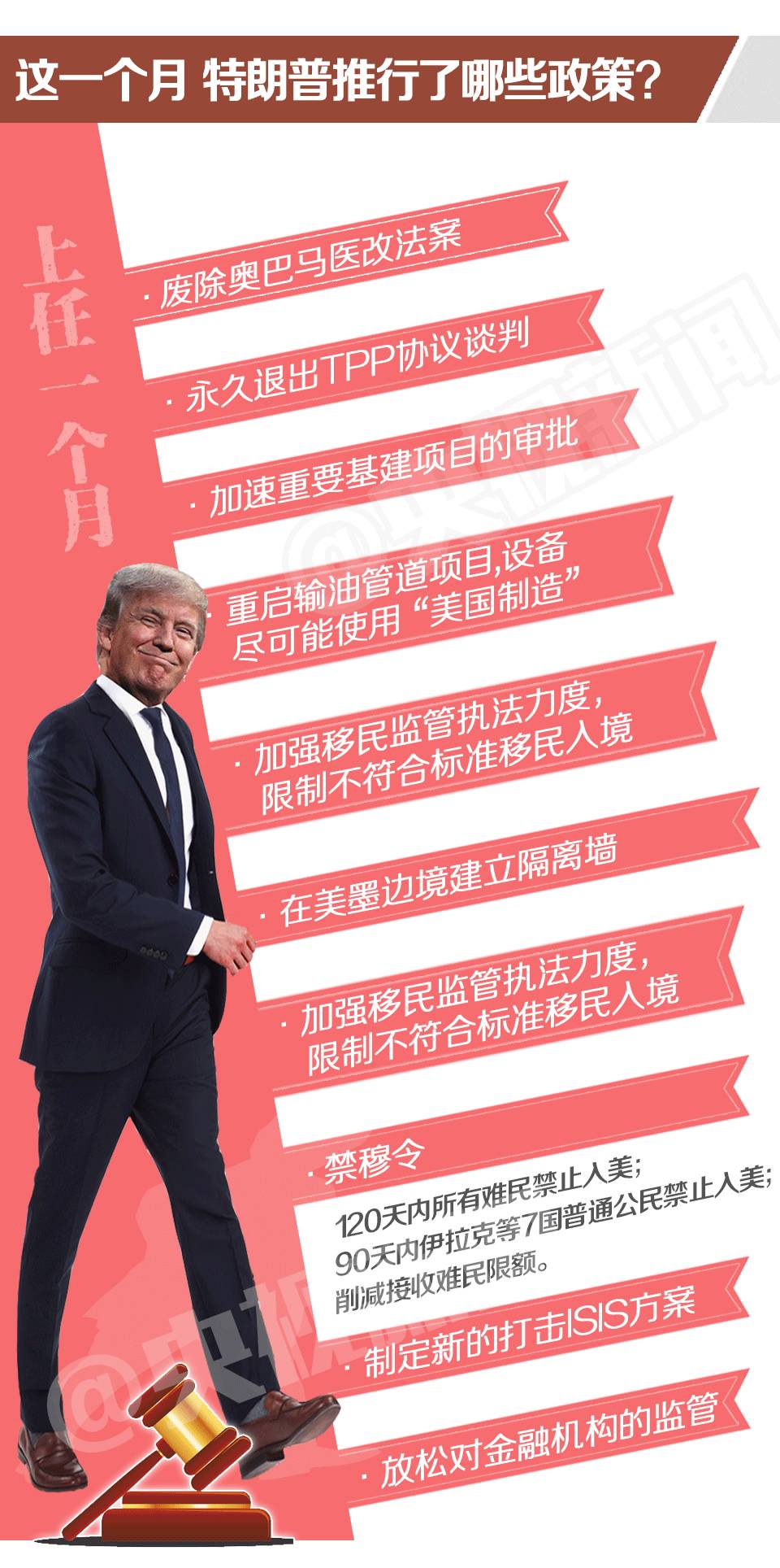 特朗普的總統之路到底是一帆風順還是舉步維艱?下面我們就來梳理一下這一個月來特朗普的成績單,看看他都干了啥、懟過誰、又被誰懟過?
