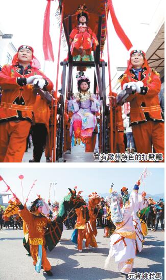 徽州元宵樂趣多,近年來,安徽省黃山市注重非遺文化的傳承保護,每年在重大節慶活動上,都要將傳統民俗活動端出亮相。元宵夜要鬧元宵,一些宗族祠堂如岩寺廣惠祠每年元宵節都要舉辦燈會,由各分支輪流主辦。岩寺燈會場景十分壯觀,有「燈市」之譽,節前一日,主辦方要從附近的汪公廟迎來汪越國公神像,供奉於廣惠祠內,並張燈五夜,演戲酬神,熱鬧非凡。潛口元宵日白天舞獅,晚上嬉「痘王燭」(又稱梅花燭)。岩寺、潛口等地還舉辦唱燈棚(即清唱,不化妝、不表演、不登台,俗稱文武場)、猜燈謎等活動,以增添節日氣氛。