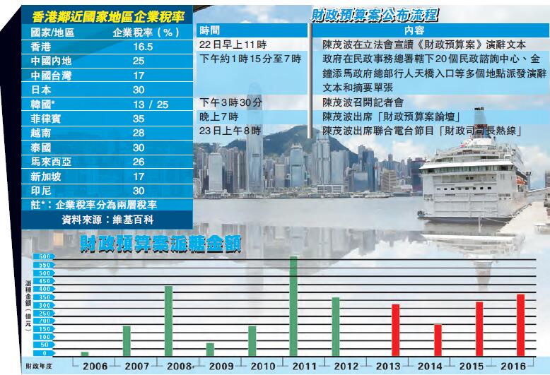 這次財政預算案盈餘將是焦點,過去4年的《財政預算案》,港府多次低估了財政盈餘,由於樓市狂升,港府為遏抑樓市炒賣,先後於2010年及2013年期間,實施三項物業印花稅,連串「辣招」致令物業交投量大減,但卻連續多年為庫房帶來巨額收入。雖然特首梁振英上台後,大幅增加土地供應,但市場資金熱衷購買土地,尤其內地房企大肆進軍香港吸納土地儲備,令港府庫房進帳異常豐厚。多家會計公司估計這次2017至2018年港府財政盈餘高達700億元或以上,將較2015至2016財年144億元大增數倍,有望成為歷年來庫房最豐收的一年。