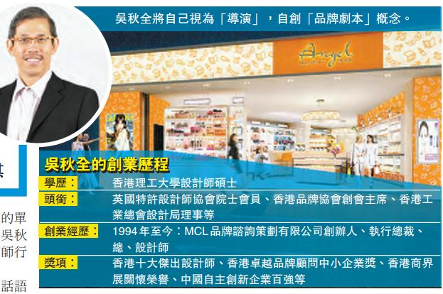 MCL品牌諮詢策劃公司創辦人兼執行總裁及創作總監吳秋全將自己視為「導演」,自創「品牌劇本」概念,細緻入微為找上門的每一間公司做診斷、調研、定位,然後拿出一個從標識、包裝設計到網站、宣傳片、室內裝修的全方位品牌規劃方案,這在現今,能做到的香港設計公司亦不超過3間。 香港商報記者 王理琪