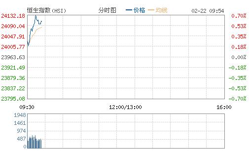 恒生分類指數全部上漲,金融分類指數漲0.2%、公用事業分類指數漲0.18%、地產分類指數漲0.73%、工商業分類指數漲0.6%。