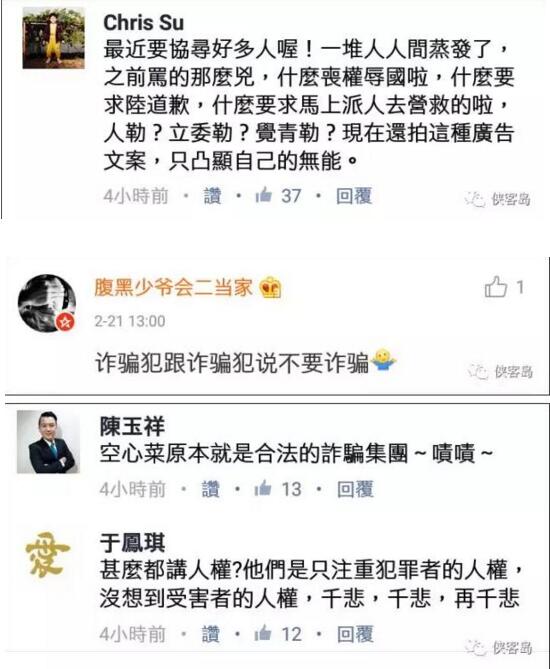 不過,“陸委會”的這條神廣告,也引來島內民眾的集體嘲諷。很多民眾表示,廣告的措辭很不妥當,而且這些詐騙人渣就該送到大陸,才能讓他們罪有應得。