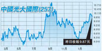 光大近日出現突破,升穿自上中月以來橫行區頂部9.5元水平,如投資者看好光大國際後市繼續突破,可在9.65至9.7元吸納,目標看10.5元,跌破9元止蝕。