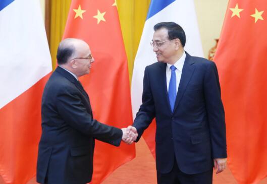 李克強在會談上表示,中法關系發展良好,一直走在中國同西方國家關系的前列。中方愿同法方一道,始終從戰略高度看待和把握中法關系,秉持相互尊重、平等合作、互利共贏的理念發展好兩國關系。中法同為聯合國安理會常任理事國,擁有廣泛共同利益和責任。在當前復雜多變的國際政治經濟形勢下,中法有必要進行深入溝通協調,深化各領域合作,共同應對風險挑戰,向世界發出致力于維護和平穩定、促進發展的強烈信號,以穩定性應對不確定性。