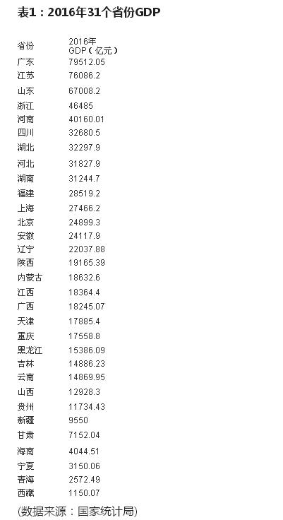 國家統計局于22日發布了31個省份2016年的地區生產總值(GDP)數據。