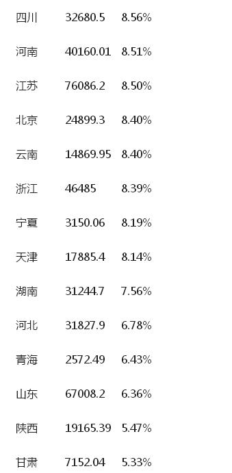 三甲之后,上海、江西、福建、安徽、湖北、海南、廣東的名義增速也位居前10。前10名的省份基本位于南方地區,其中既有上海、福建、廣東這樣的發達省份,也有貴州、重慶、江西等中西部省份。