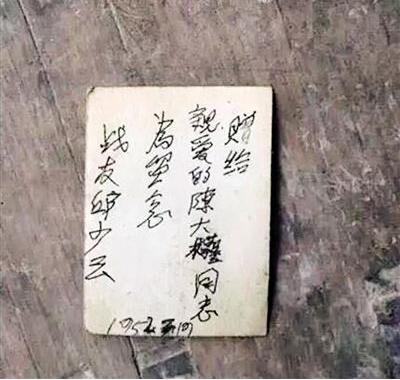 疑似邱少云證件照(上圖)及照片背面簽字(下圖)。