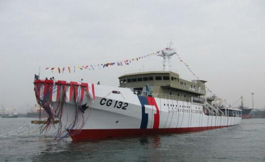 2014年苗栗艦下水典禮。據臺媒報道,苗栗艦全長87.6米,吃水3.55米,配備2臺功率為7280千瓦的柴油機,最高航速可達24節,最大續航范圍6000海里,乘員為50人。該一千噸級海警巡邏艦配備有20毫米機炮和40毫米機炮各1門。
