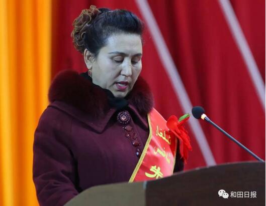 受表彰代表帕提古麗·伊斯拉木正在做發言。
