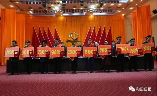 會議宣讀了《關于對“2·14”案件有功人員表彰的決定》。與會領導為受表彰人員頒了獎。此次案件中共有4人被破格提拔;11名見義勇為先進個人、13名表現突出的公安民警及12名參與現場救援的先進個人共計受獎勵176萬元。