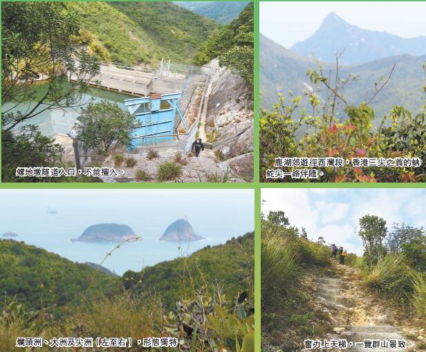 看花看得心花怒放時,後果是偏離郊遊徑,走進了分叉路,但這下子卻有得,分叉路之盡頭是螺地墩隧道入口,這是水務署集水區內的設施,嚴禁進入,但有部分鐵絲網已毀爛,顯示已遭受破壞。而設施附近水道兩旁樹木茂密,水色清綠,景色十分宜人。這條分叉路還可遠眺大浪灣的爛頭洲、大洲及尖洲。