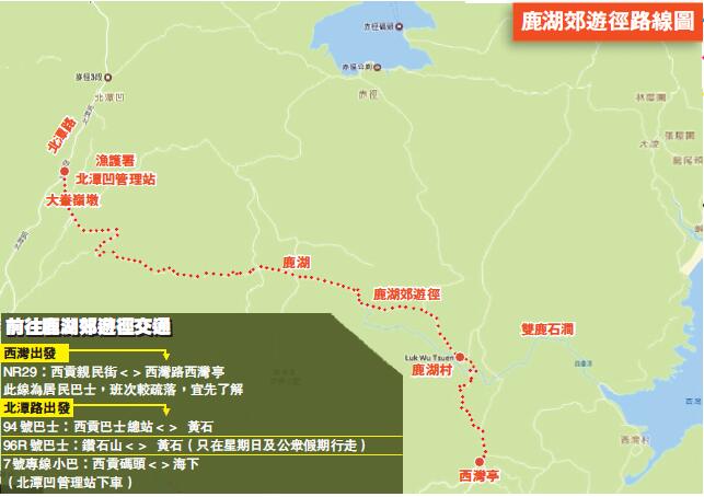 離開高原,沿小徑下山後經過一水閘堤壩,續沿引水道向北潭凹方向行,經大輋嶺墩到達漁護署的北潭凹管理站出終點北潭路。留意尾段亦可經魚湖到北潭路。