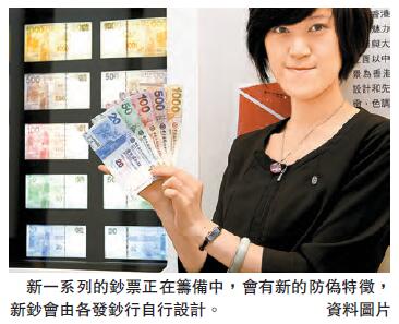 【香港商報網訊】金管局助理總裁(機構拓展及營運)陳維民透露,新一系列的鈔票正在籌備中,會有新的防偽特徵,新鈔會由各發鈔行自行設計,至於何時推出,是否與今年香港回歸20周年有關,他未有詳細評論,但指出每數年都會推出新鈔。
