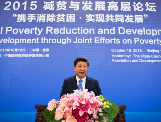 2015年10月16日,2015減貧與發展高層論壇在北京人民大會堂舉行。習近平出席論壇并發表主旨演講。新華社記者李學仁攝