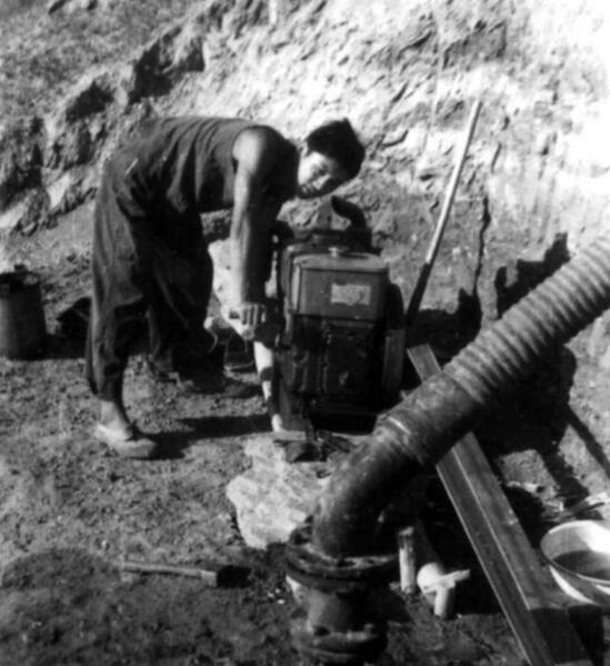 這是習近平在梁家河參加勞動的照片,他正在操作柴油機抽水。(延川縣委宣傳部供圖)