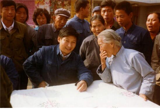 1983年,時任河北正定縣委書記的習近平(前排居中),臨時在大街上擺桌子聽取老百姓意見。新華社發