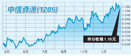 中信資源(1205)截至2016年12月31日止全年收入29.56億元,按年減少20.4%,但在投資收益與聯營公司虧損減少,金融資產公允值大增及成本降低下,扭虧為盈錄得溢利3.6億元(上年度虧損61億元),每股盈利4.62仙。