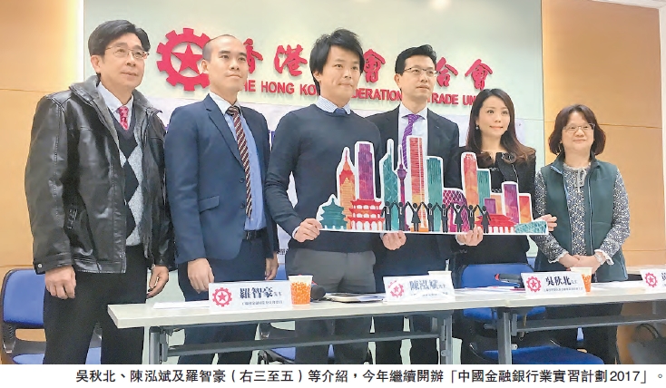 吳秋北表示,工聯會金融專業委員會及中國銀行業協會於去年首次合辦「中國金融銀行業實習計劃」,為本港大專生提供難得機會,到北京和上海等不同地方的銀行和金融機構實習,包括:建設銀行、工商銀行、交通銀行等大型銀行企業接受培訓實習,親身感受內地金融業及經濟發展,有見「計劃」成效不錯,今年兩個團體將再次合作舉辦有關計劃。