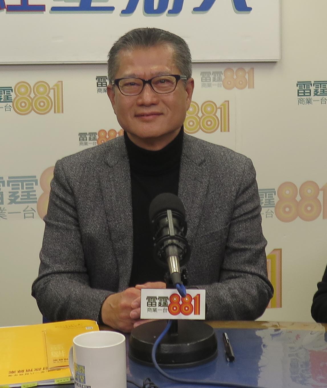 陈茂波出席电台节目,回应有关财政预算案的提问。