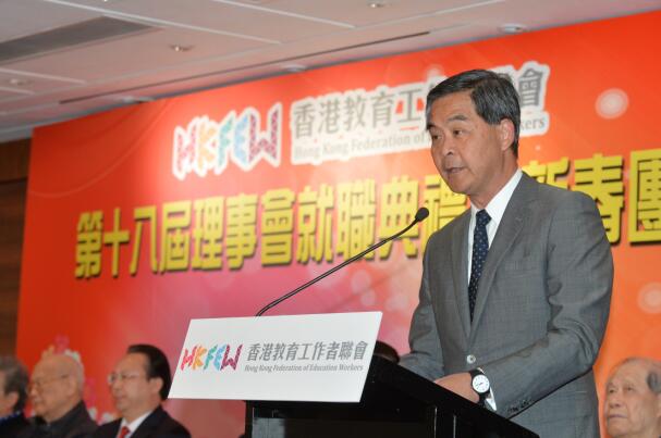 梁振英又提到,政府一向重視教育事業和支援教育工作者,在2017至18年度的教育經常性開支高達786億元,佔政府經常開支最大的份額;他讚揚教聯會多年來就各項教育政策向政府提出寶貴意見,一直是政府的重要夥伴。