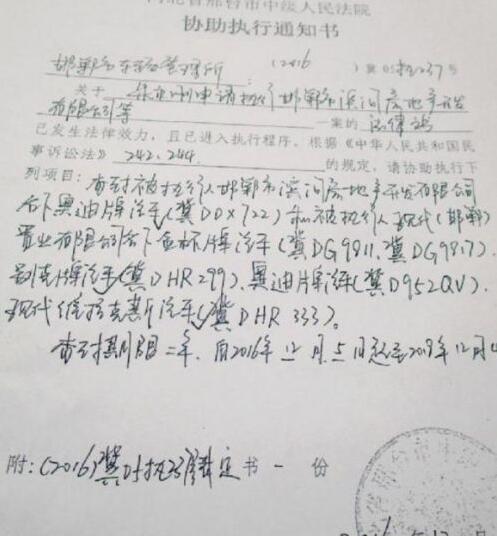 邯鄲市中院對爛尾的現代系列住宅項目查封凍結通知書。