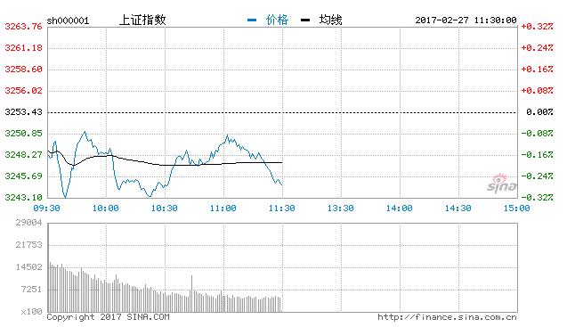 截止上午收盤,滬指報3244.71,跌0.27%,創業板報1939.51,漲0.06%。