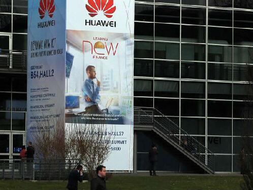 资料图:在德国汉诺威,中国华为公司的室外广告宣传立柱。新华社记者罗欢欢摄