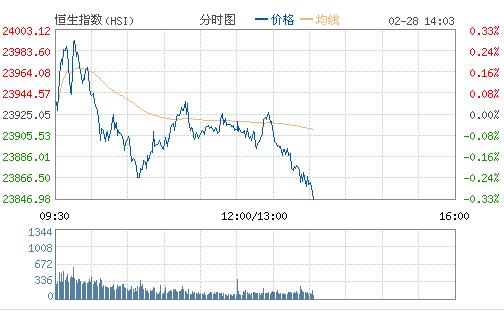 美國股市已連升12日,創下逾30年以來最長升市。市場觀望特朗普本周二(28 日)將在國會發表講話。恒生指數今早高開0.12%,開盤后走勢反復,最高漲82點,重返24000點,高見24007點,于上午10時一路走勢向下,最多跌60點,低見23864點,其后于23900點爭持。截至午間收盤,恒生指數跌0.06%,報23910.5點;國企指數漲0.36%,報10368.37點;紅籌指數漲0.22%,報3880.08點。大市成交額336.91億。