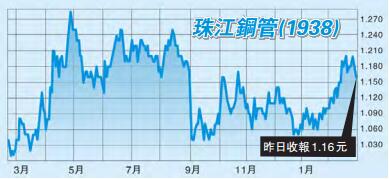 同時內地全國管道建設進程將加快,市場預計,以一公里需要400噸鋼管計算,拉動超過2000萬噸的鋼管需求,利好油服及相關設備股,對珠管發展有利,擴大收入來源及發揮規模優勢,催化更多商機。該股昨日收報1.16元,建議可於1.15元吸納,上望1.3元目標,跌穿0.96元止蝕。任盈盈