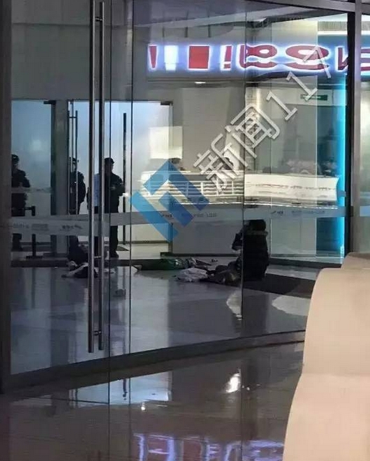 記者到達時,兩具孩子的屍體都已用藍色布單蓋了起來,墜落區域的玻璃外牆也已用布遮擋,有專業人員在現場測量拍照。不遠處工作人員圍著一名情緒激動的婦女,似乎是孩子的母親,現場能聽到吵鬧聲和哭喊聲。