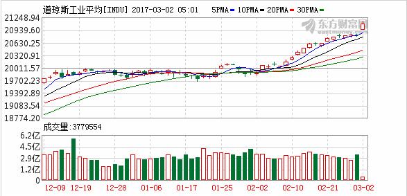 周三美股延續前期漲勢,再創曆史新高;道指漲破21000點整數關口,整體成交量3.89億較前一日3.38億增加。美國總統特朗普國會首秀大談1萬億基建,加大國防開支,制定曆史性稅改等重大利好美國經濟政策,刺激投資者做多情緒。另外,2月份美國制造業采購經理人指數從前月的56升至57.7。靚麗制造業數據亦令市場興奮。