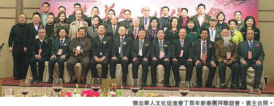 【香港商報网訊】記者謝巧玲報道:傑出華人文化促進會(下稱『文促會』)丁酉年新春團拜聯誼會暨慶祝香港回歸祖國20周年主題活動啟動禮,日前假香港賽馬會會所隆重舉行,傑出華人文化促進會主席彭光宇,丁酉年新春團拜聯誼會大會主席馬偉武、第一副主席陳華德,中聯辦新界工作部副部長張肖鷹,廣東省僑聯副主席、深圳市僑聯主席馬勇智等共同主持主題活動動禮,與出席的成員,各界來賓歡聚一堂,共慶新春,現場喜氣洋洋。