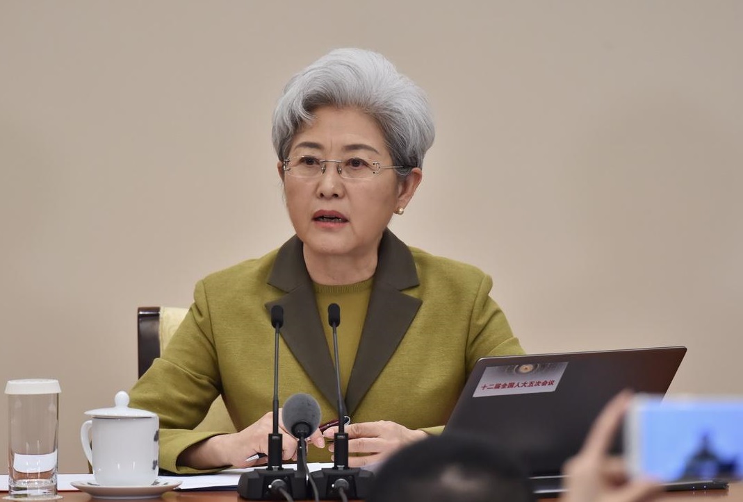 每年兩會首次人大新聞發布會都格外引人矚目,發布廳又被媒體同行圍得水洩不通,其中不乏發言人傅瑩的資深「傅粉」,就算擠不進去也要站在門口聽聽「女神」的「答卷」。昨日的傅瑩還是標誌性微捲銀髮,依然是親和優雅的微笑,身穿今年流行色草木綠套裝,撲面而來一股春天的氣息。一個民法問題預熱之後,她就迎來兩個「必答題」,她自己都笑說:「國內記者問霧霾,國外記者問軍費開支,已經成為了必答題。」