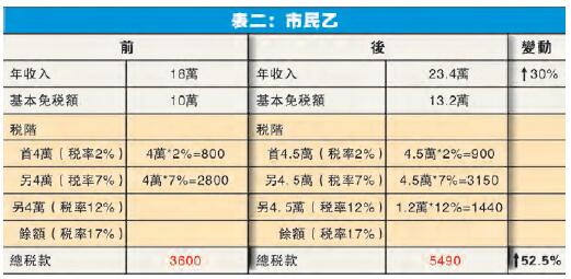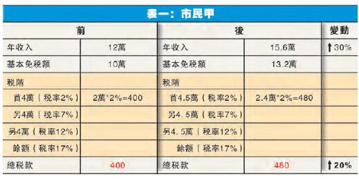 當然,此前的預算案亦有上調基本免稅額,即由10萬增至最新13.2萬元,幅度剛好超過三成;不過,這跟稅階調整完全是兩個概念。