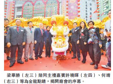 一年一度大角咀廟會,由旺角街坊會主辦、油尖旺民政事務處協辦。旺角街坊會主席梁華勝,主禮嘉賓民政事務局副局長許曉暉、中聯辦九龍工作部部長何靖、油尖旺民政事務專員蔡亮、油尖旺區議會主席葉傲冬、社會福利署九龍城及油尖旺區福利專員黃燕儀等出席開幕典禮,並共同主持鳴炮、醒獅點睛及簪花掛紅等儀式,正式為廟會揭開序幕。