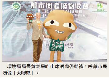黃錦星昨日出席「都市固體廢物收費—第二批社區參與項目」啟動禮後稱,由於都市固體廢物徵費條例草案有複雜性,預計立法會將於2018年中完成審議,最早在2019年下半年落實。他續說,參與試行垃圾徵費計劃的社區參與者都支持徵費,認為垃圾徵費有利回收業市場,而現時回收物料的價值有所提升,政府會加大對社區回收的支援,協助業界提升運作力度。