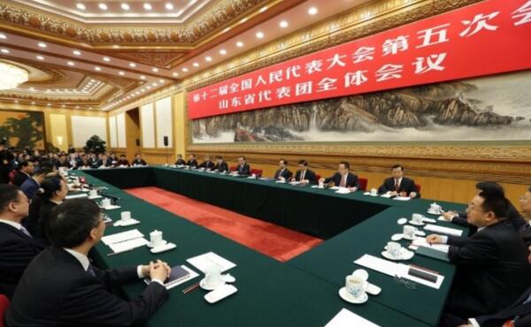 李克強總理6日上午來到他所在的十二屆全國人大五次會議山東代表團,參加審議政府工作報告。代表們稱贊總理所作的報告充分體現了民心民意、求真務實。報告中“干貨很多”、“很接地氣”。總理偶爾插話詢問,不時記錄下代表的意見建議。