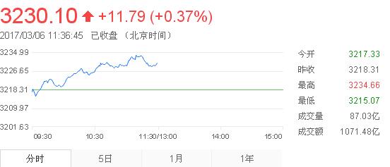 3月6日消息,滬深兩市早盤持續震蕩上揚,創業板表現突出,早盤上漲幅度逾1.5%。截止收盤,滬指報3230.10,漲0.37%,創業板報1958.22,漲1.45%。