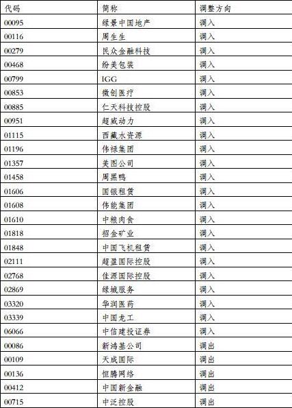 據深交所3月6日消息,因恒生綜合大型股指數、中型股指數、小型股指數實施成份股定期調整,根據深交所深港通業務實施辦法的有關規定,港股通股票名單發生調整并自今日起生效。其中,美圖公司、周黑鴨、周生生、綠景中國地產、中糧肉食、華潤醫藥等調入港股通名單;天成國際、恒騰網絡等公司調出港股通名單。
