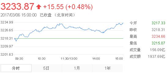 3月6日消息,滬深兩市震蕩沖高,隨后滬指及創指均出現較高位置滯漲走勢,隨后滬指回調,創業板表現較強,幾乎無回調走勢,指數成功突破60日均線,走出一根光頭光腳大陽線。截止收盤,滬指報3233.87,漲0.48%,創業板報1962.77,漲1.79%。