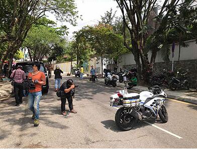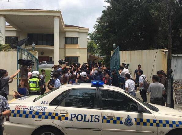 朝鮮使館門口一朝鮮外交牌照的車試圖駛出使館,被大馬警方的車輛攔在外面。朝鮮使館工作人員步出使館,目前雙方處于對峙狀態。