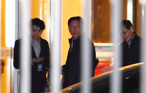 2017年3月7日凌晨0點16分,遭馬來西亞政府驅逐的朝鮮大使姜哲乘坐MH360次航班抵達北京,在首都機場3號航站樓落地。姜哲攜妻子女兒與他同行現身。姜哲將從北京中轉飛回朝鮮平壤。圖為姜哲一行離開機場前往朝鮮大使館。