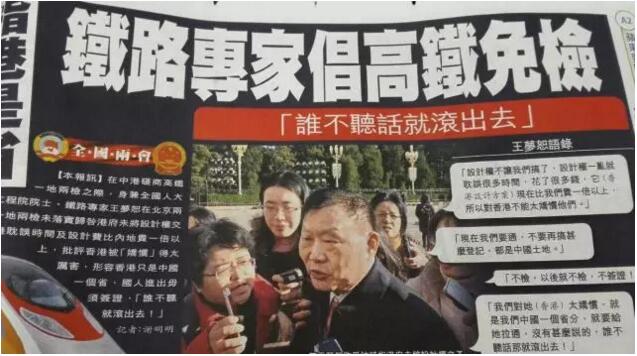 王夢恕續稱,“十三五”規劃中已列明,今年內會把高鐵由北京接通到香港,形容“中央對香港太嬌慣”,“香港只是中國一個省份”,要把鐵路拉通至香港,“誰不聽話那就滾出去”。
