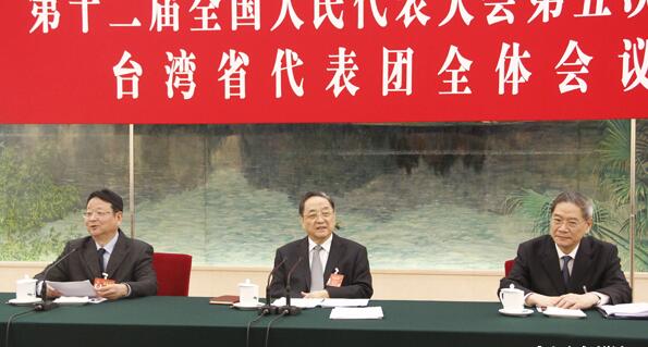 3月7日上午,中共中央政治局常委、全國政協主席俞正聲參加十二屆全國人大五次會議臺灣代表團審議。