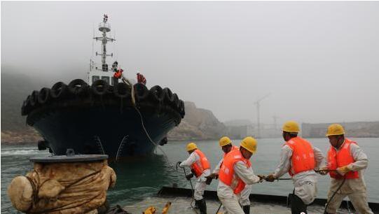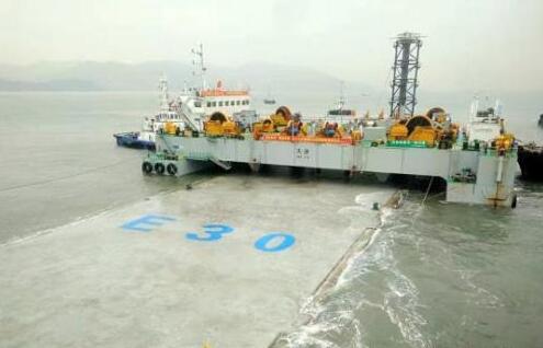 浮運中的E30沉管在原地抗流,等待進入橫移區。中新網 周玉峰 攝