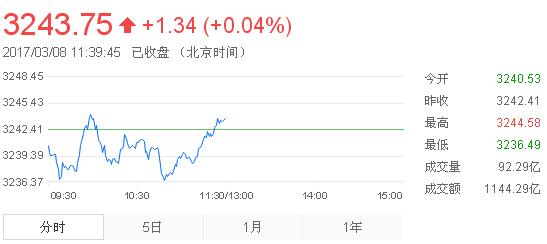 3月8日消息,滬深兩市早盤低開,隨后盤中持續低位震蕩。創業板跌幅稍大,臨近上午收盤,跌幅有所收窄。截止早盤收盤,滬指報3243.61,漲0.04%,創業板報1969.03,跌0.44%。